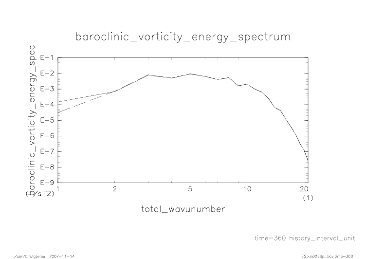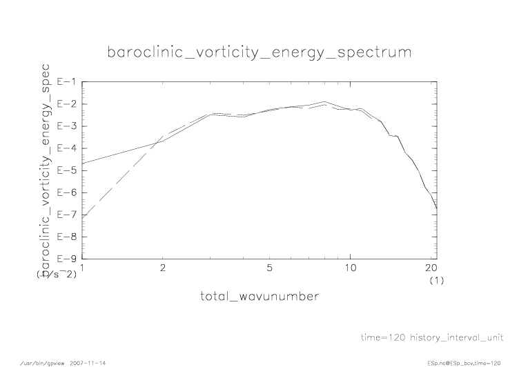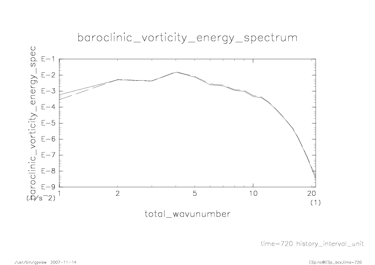 傾圧渦度・順圧渦度のエネルギースペクトル |