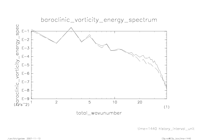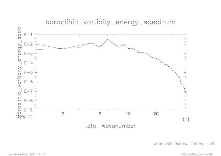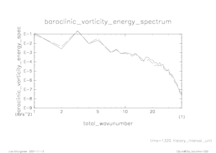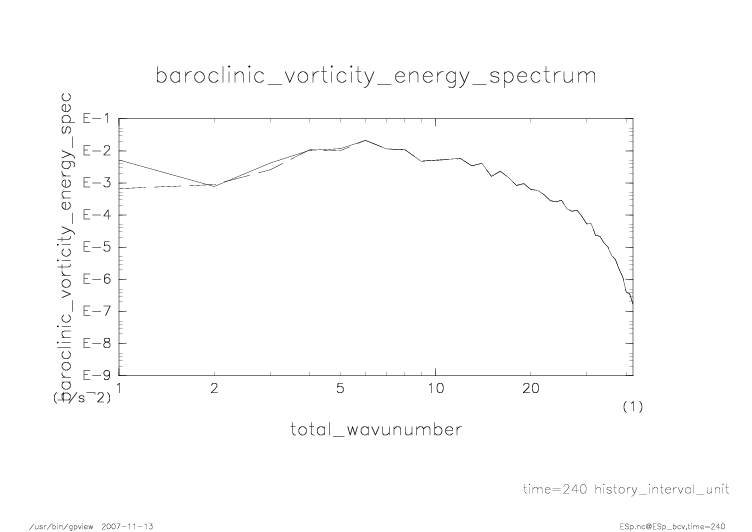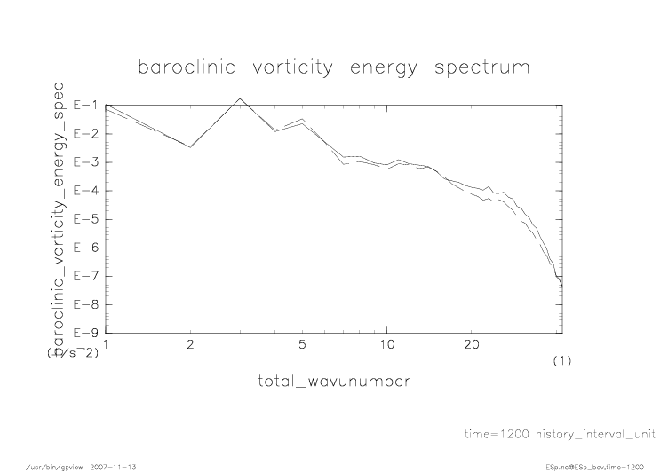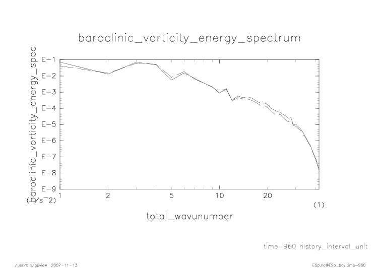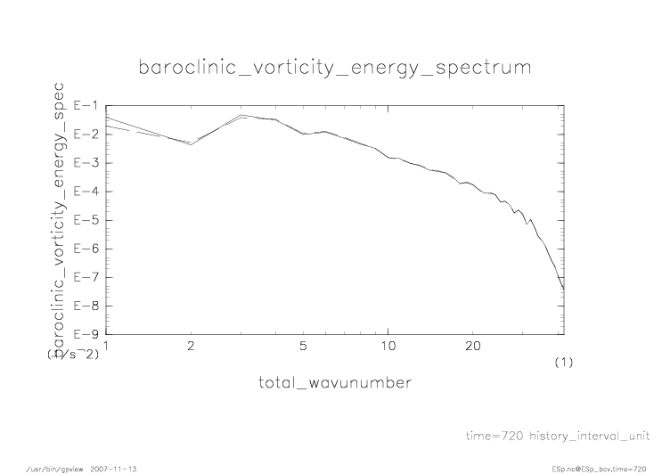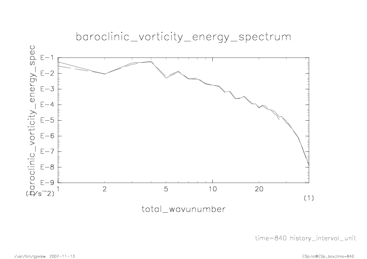 傾圧渦度・順圧渦度のエネルギースペクトル |