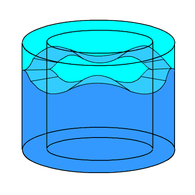 and vibrated a rubber membrane on the surface of the water with air, and created waves (internal gravity waves) that way.