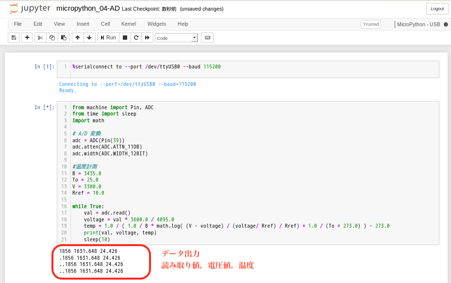 A/D 変換 (MicroPython + Jupyter)