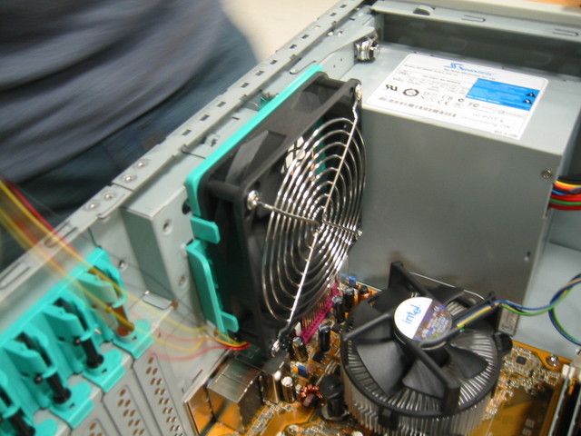 背面ファンを筐体から取り外します. ネジは使わずに脱着可能です.