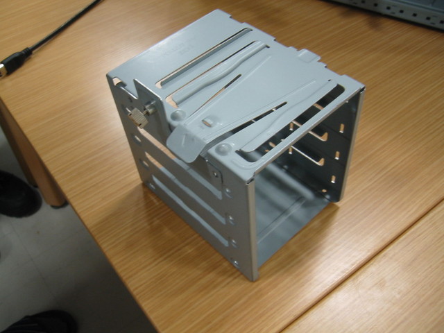 ハードディスクを取り付けるブロックを取り外します. (ドライブを取り付ける部分の下部にあります). ネジをいくつかはずすと取れます.