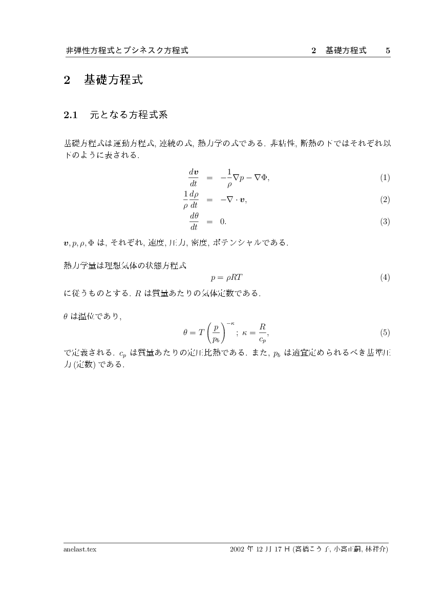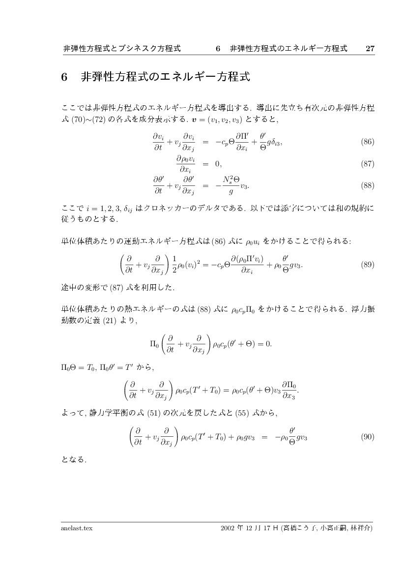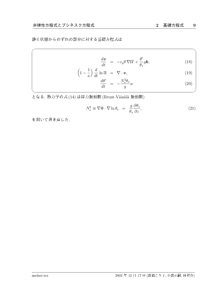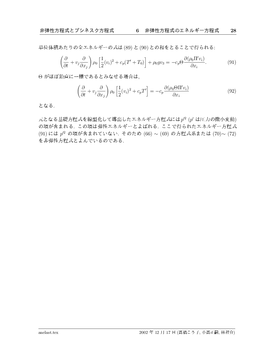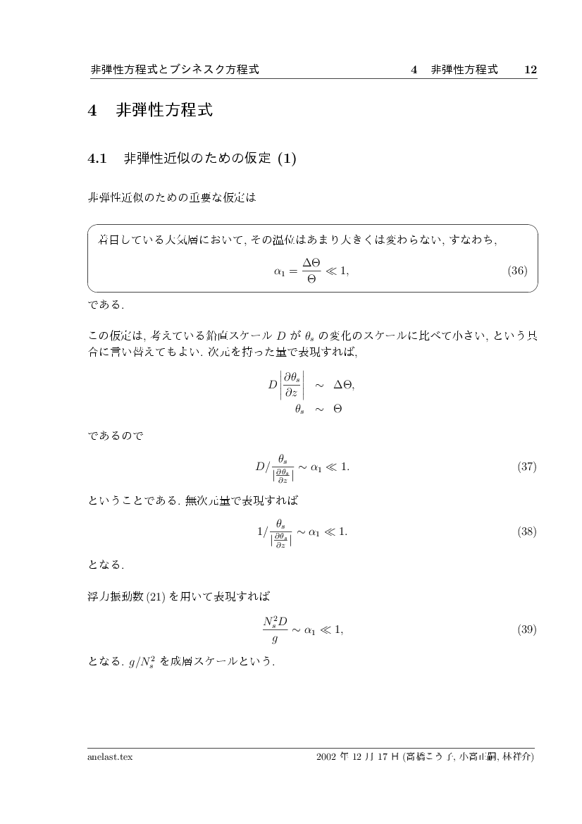 非弾性方程式とブシネスク近似 公開領域