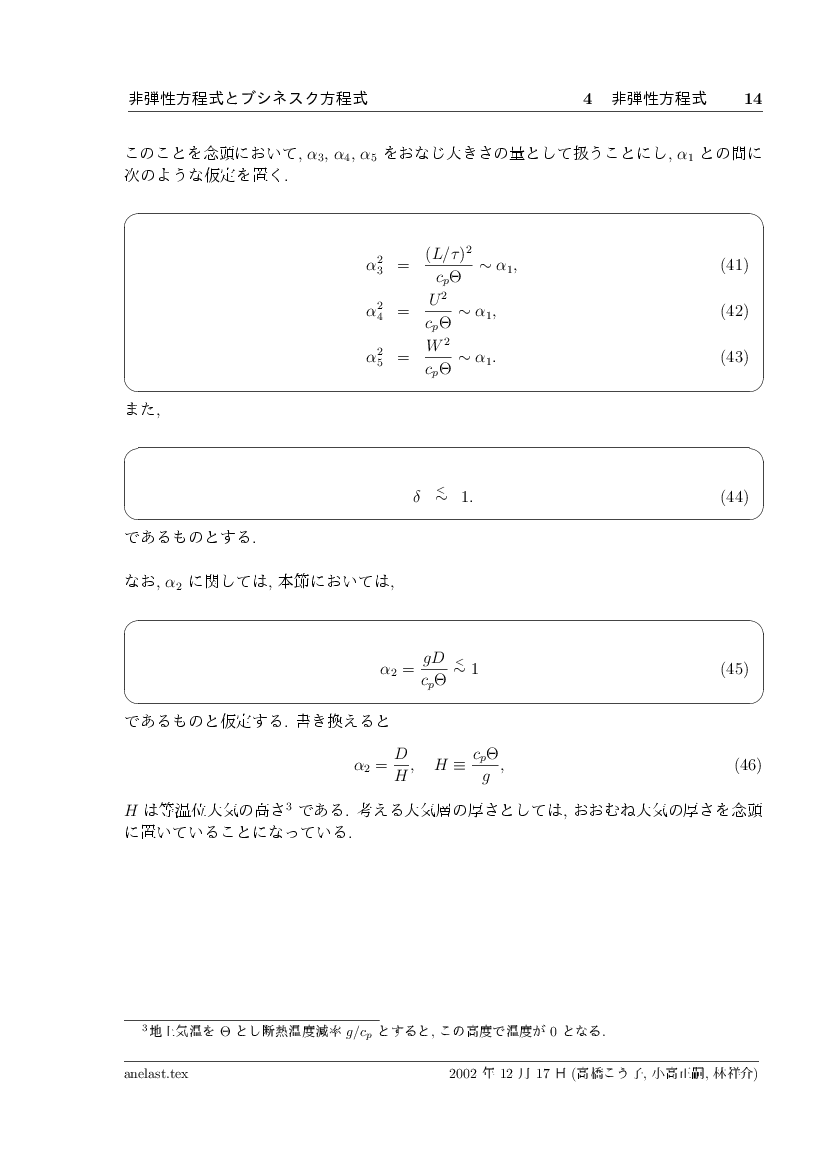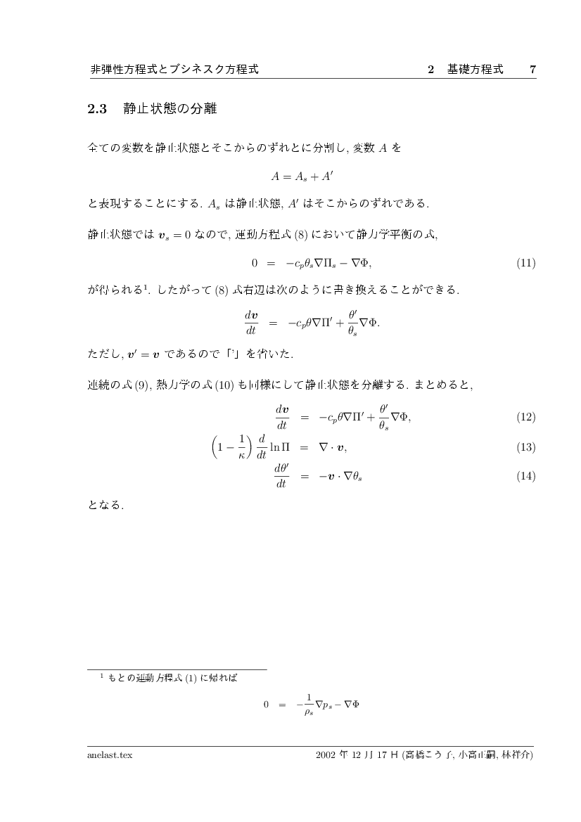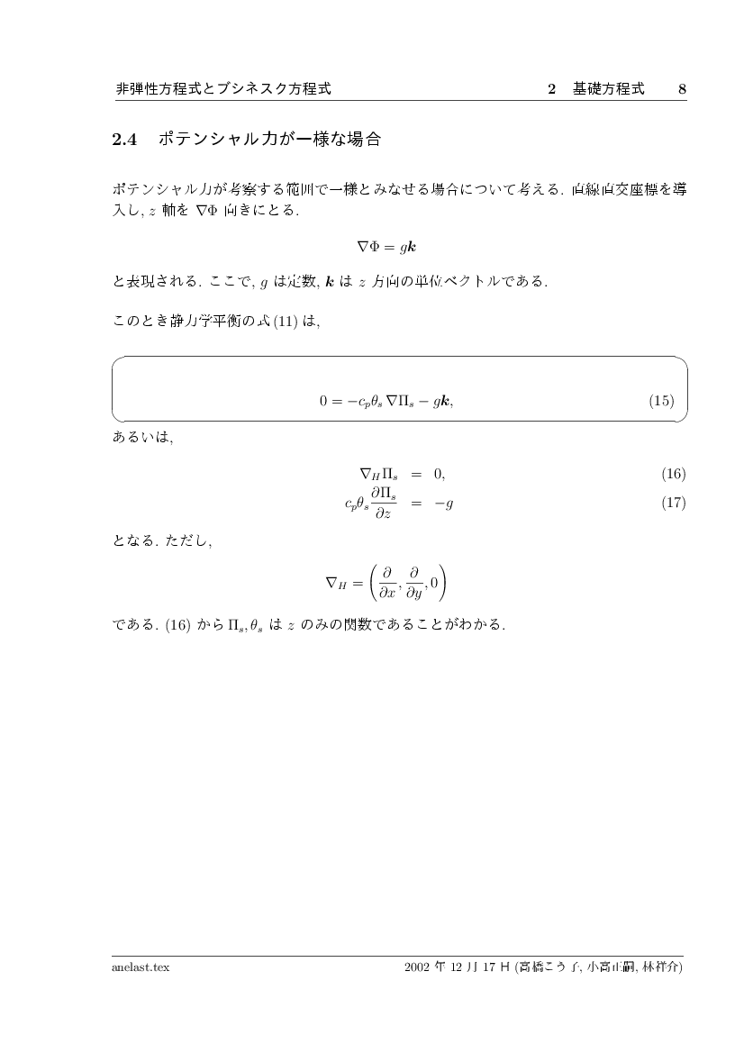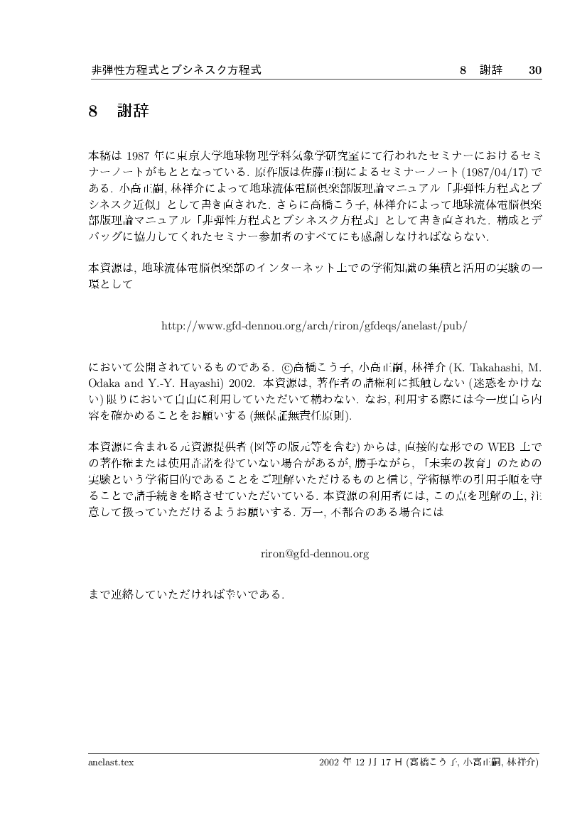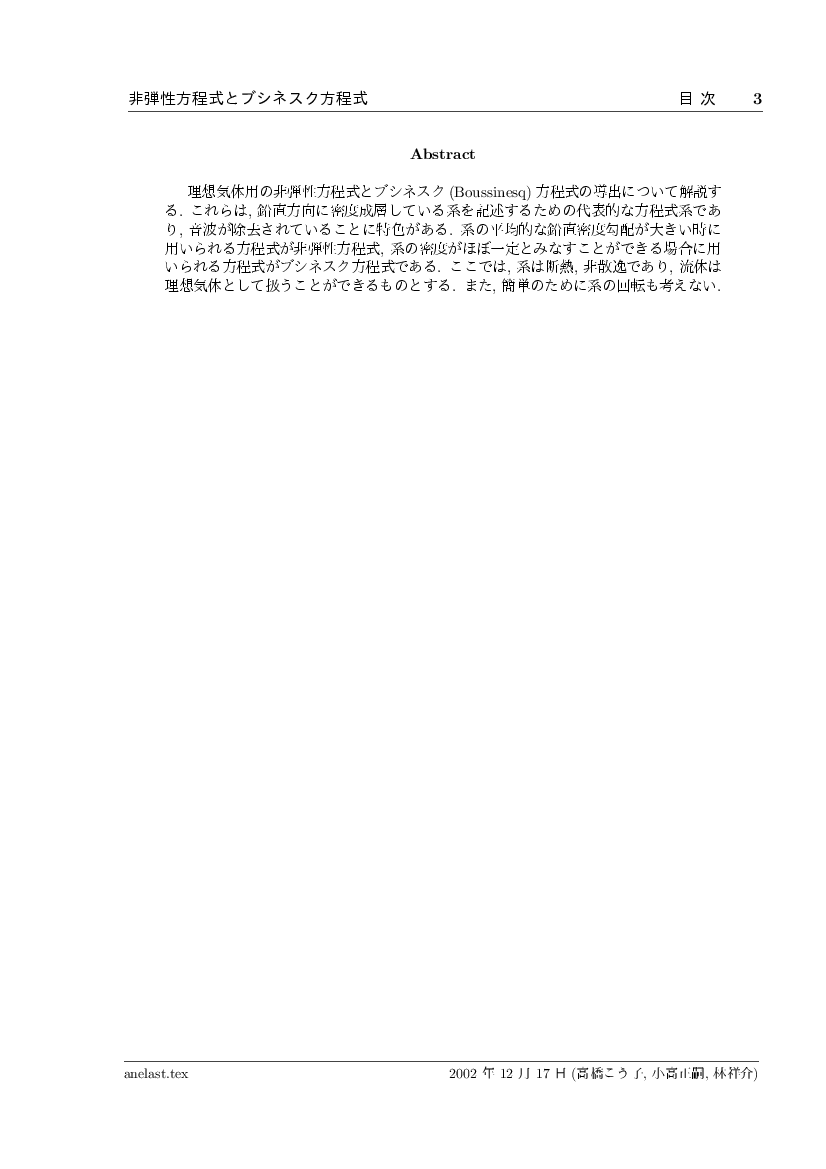 非弾性方程式とブシネスク近似 公開領域