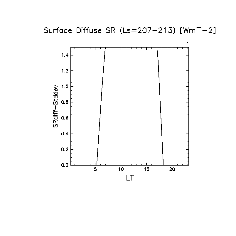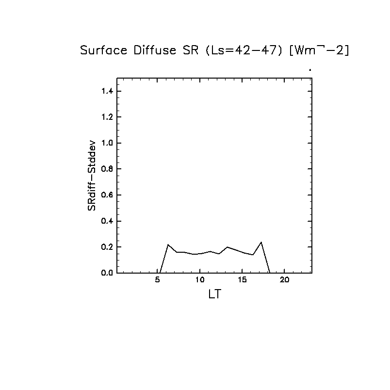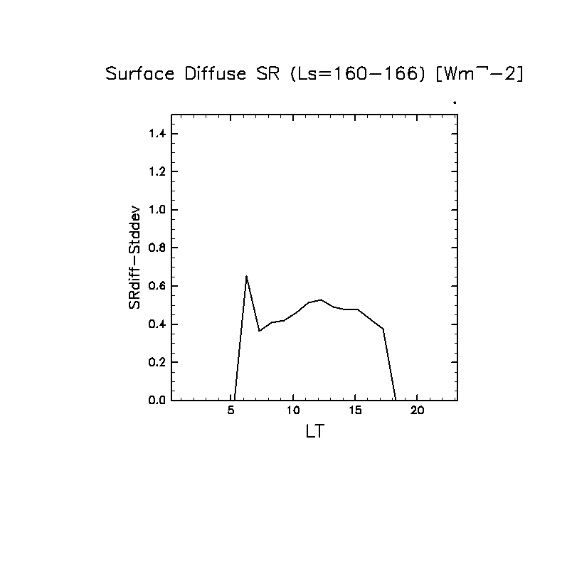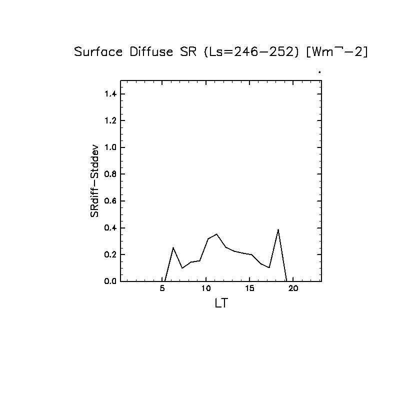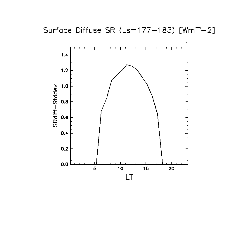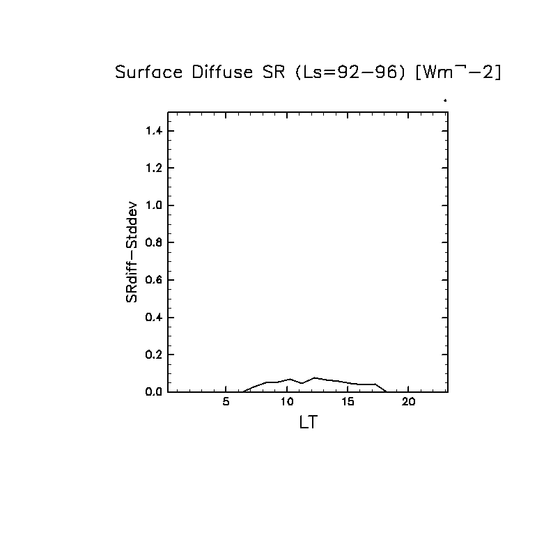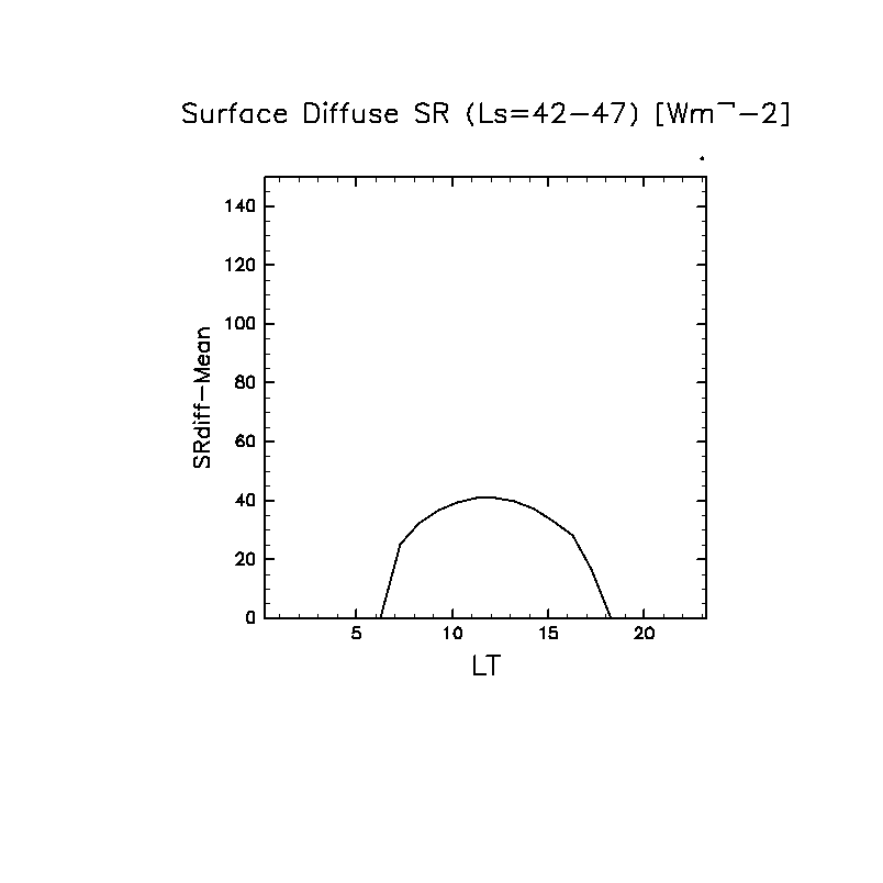 地表における太陽放射の散光成分 (下向きを正, 赤実線は平均)
