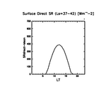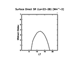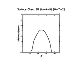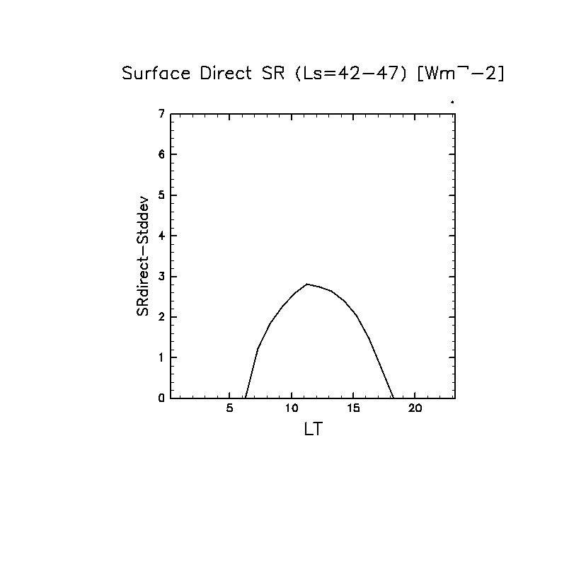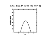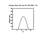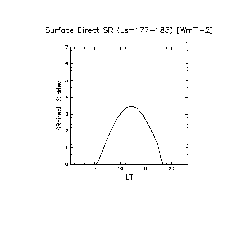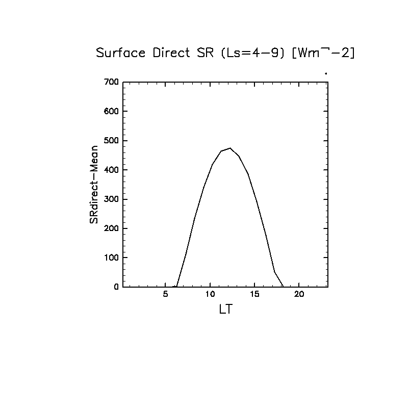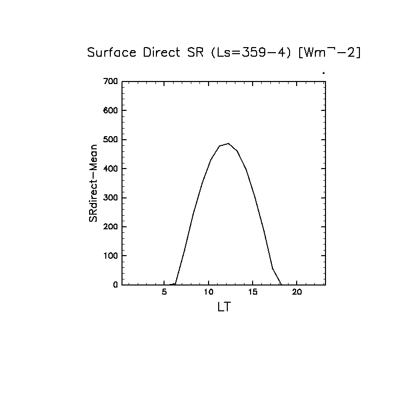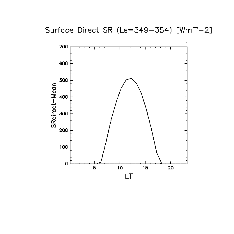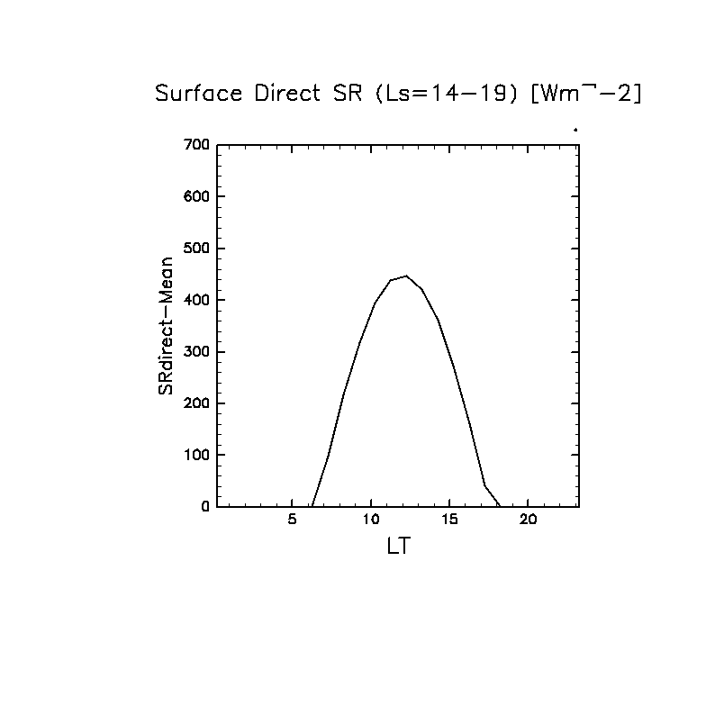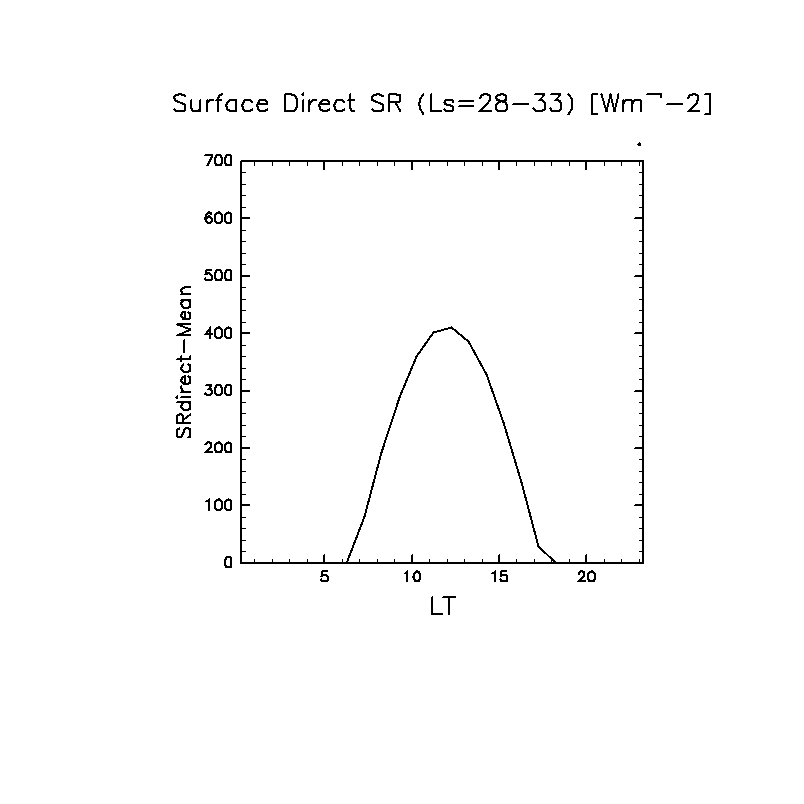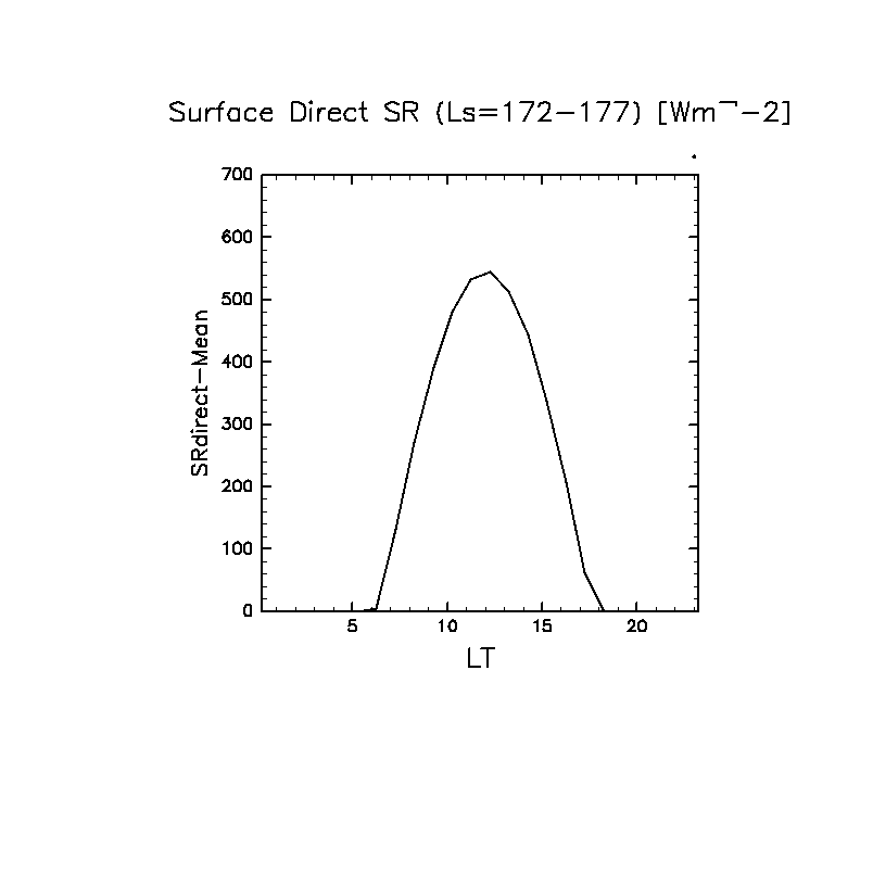 地表における直達太陽放射 (下向きを正, 実線は平均, 破線は大気上端)
