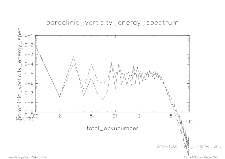 傾圧渦度・順圧渦度のエネルギースペクトル |