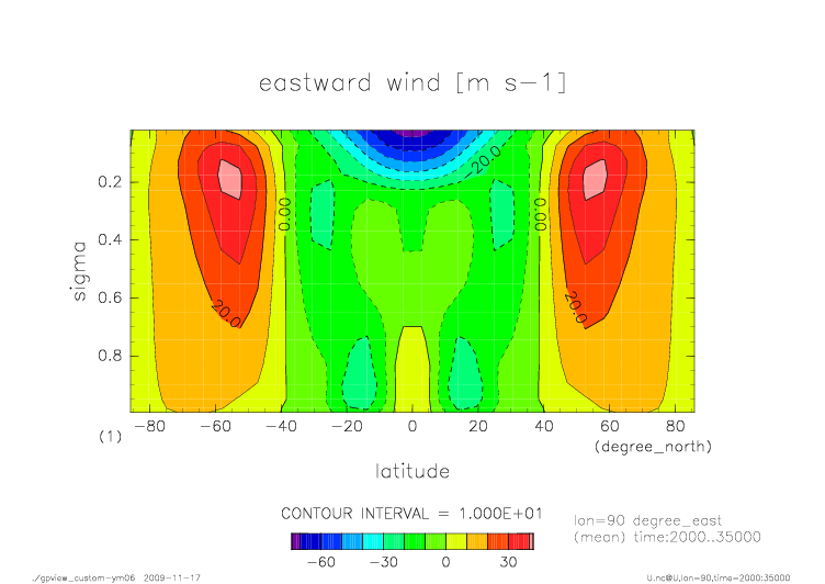 東西風速 昼半球平均・帯状平均
