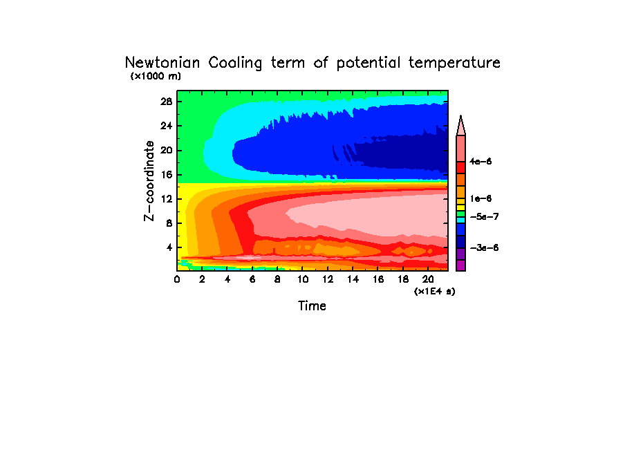 - -2 [K] * (15 [km] - z)/5 [km] [K/day]