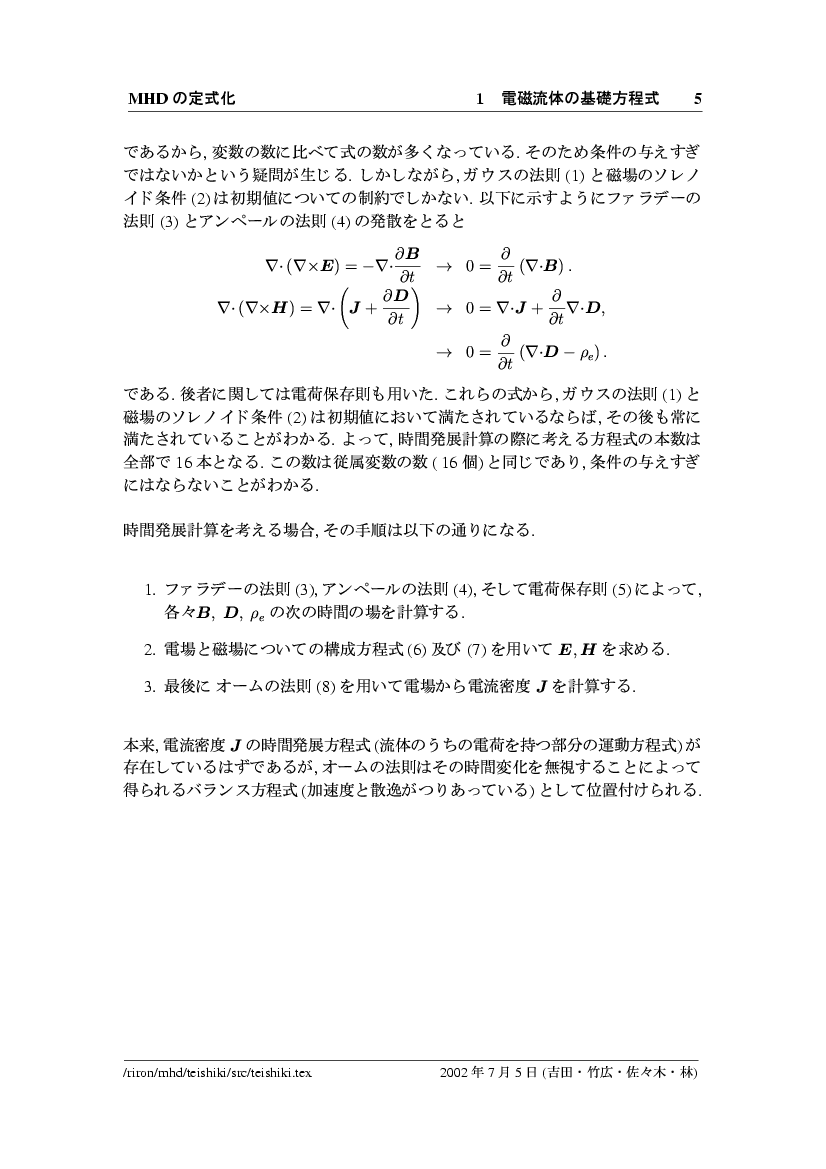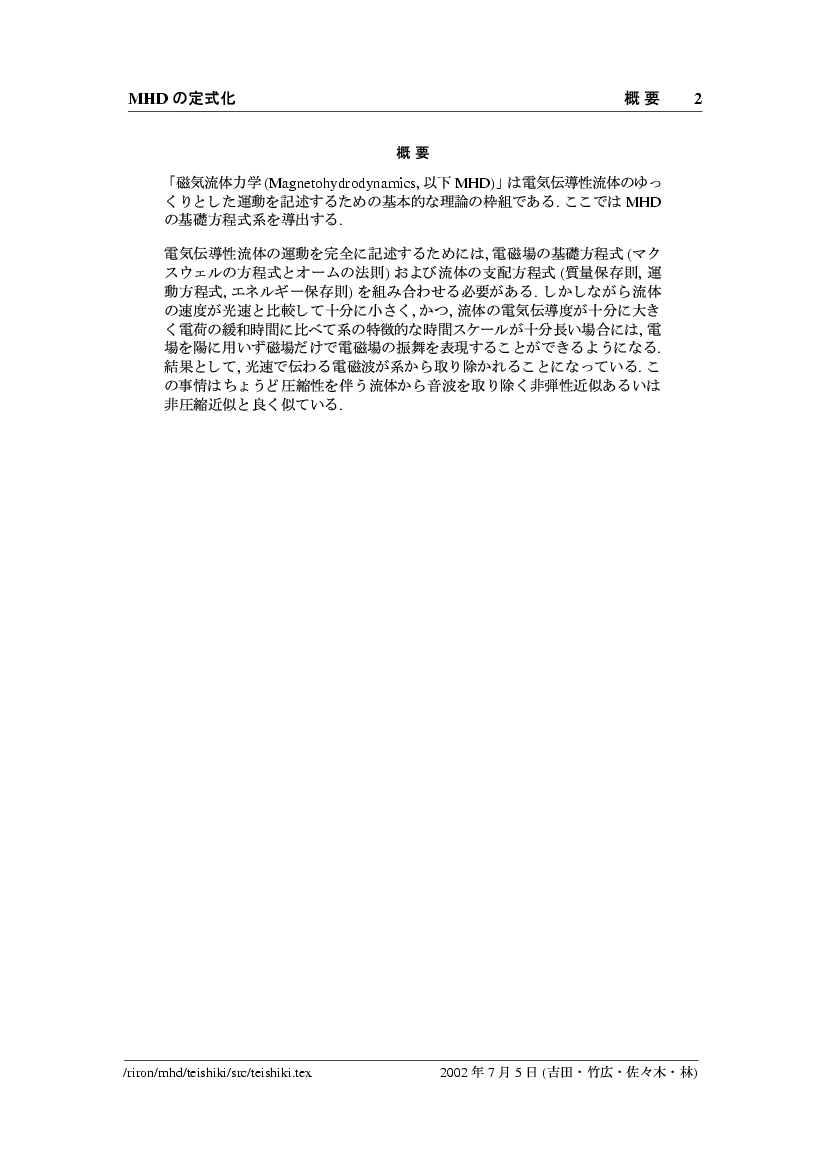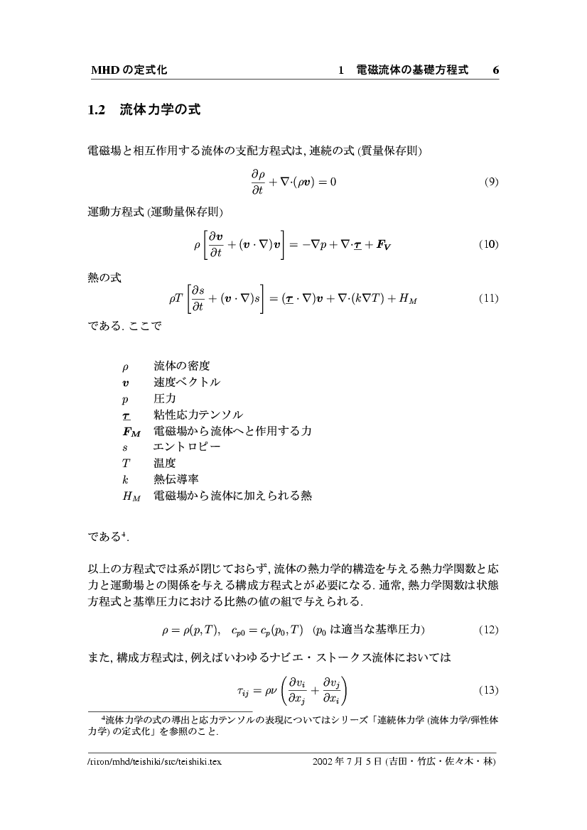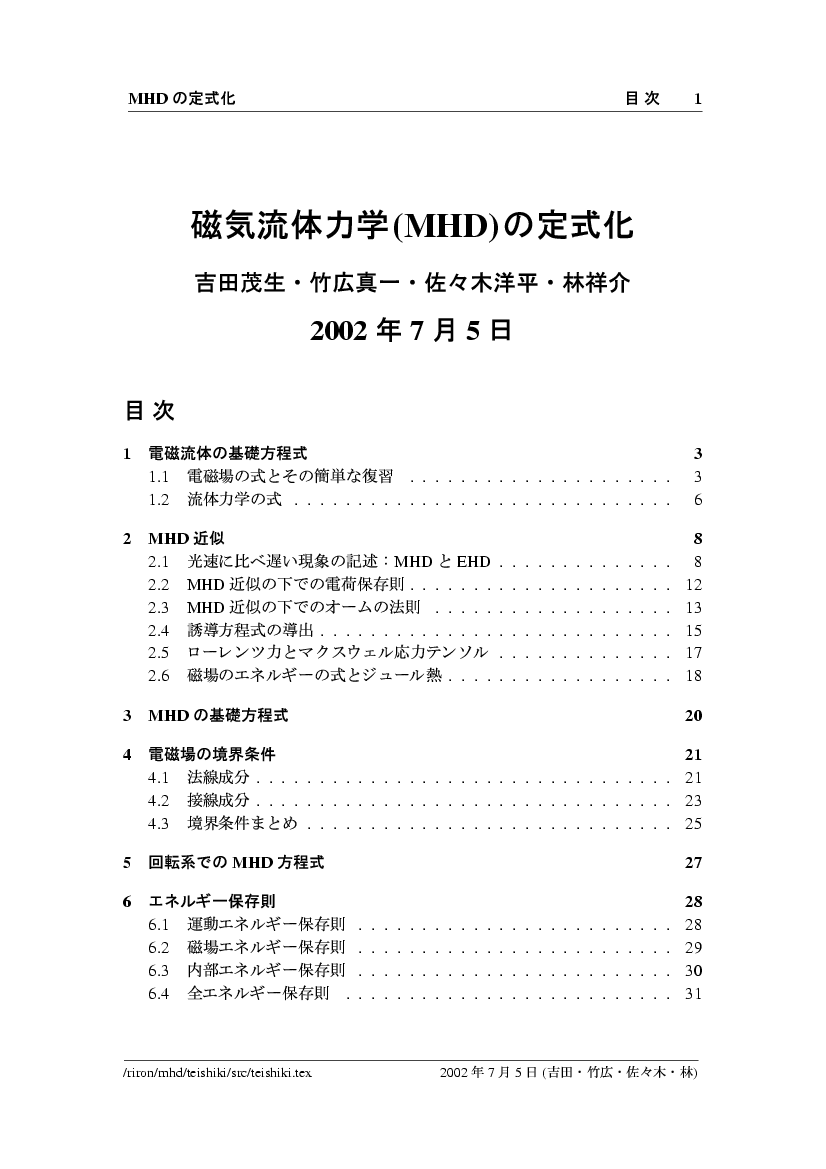 磁気流体力学方程式系の定式化 公開領域