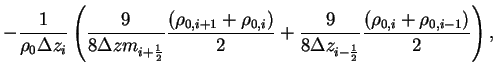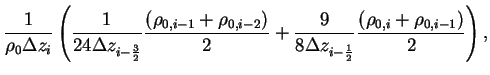The second and forth order centered schemes are used because the space differencing in the continuity equation is evaluated by the forth order centered scheme while that in the pressure gradient term is evaluated by the second order centered scheme. Therefore is quintdiagonal matrix. The element is represented as follows.